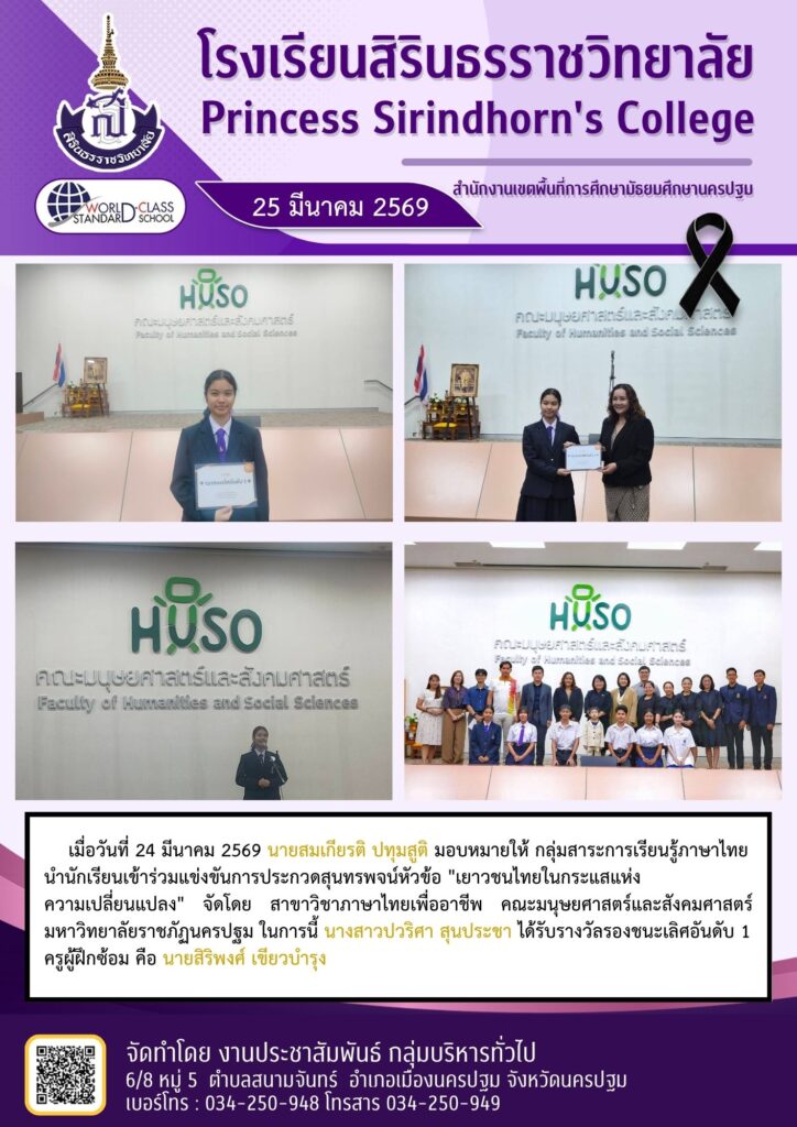 27 มีนาคม 2569 ประกาศโรงเรียนสิรินธรราชวิทยาลัย